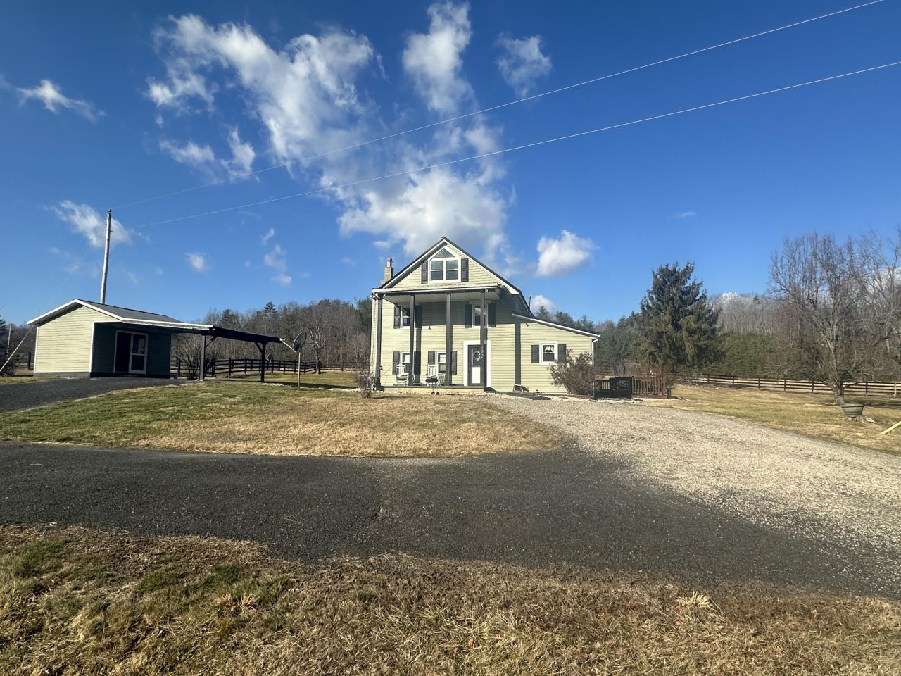 A charming two story vinyl sided home with replacement windows and a metal roof setting along Dunlap Creek in the Hematite area of Alleghany County only thirteen miles from downtown Covington. The home features a loft bedroom accessed by a beautiful spiral stair case along with two other bedrooms and a full bath upstairs along with a walkout deck. The first floor has a living room, dining room, and kitchen along with a full bath. The house has a rear enclosed porch and a side deck/patio.